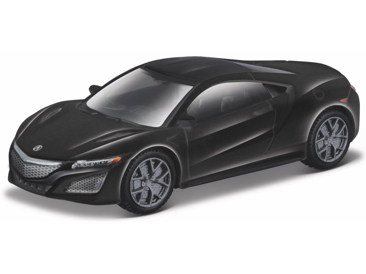 Gedetailleerd schaalmodel van de Acura Nsx in schaal 1:64 en kleur zwart.