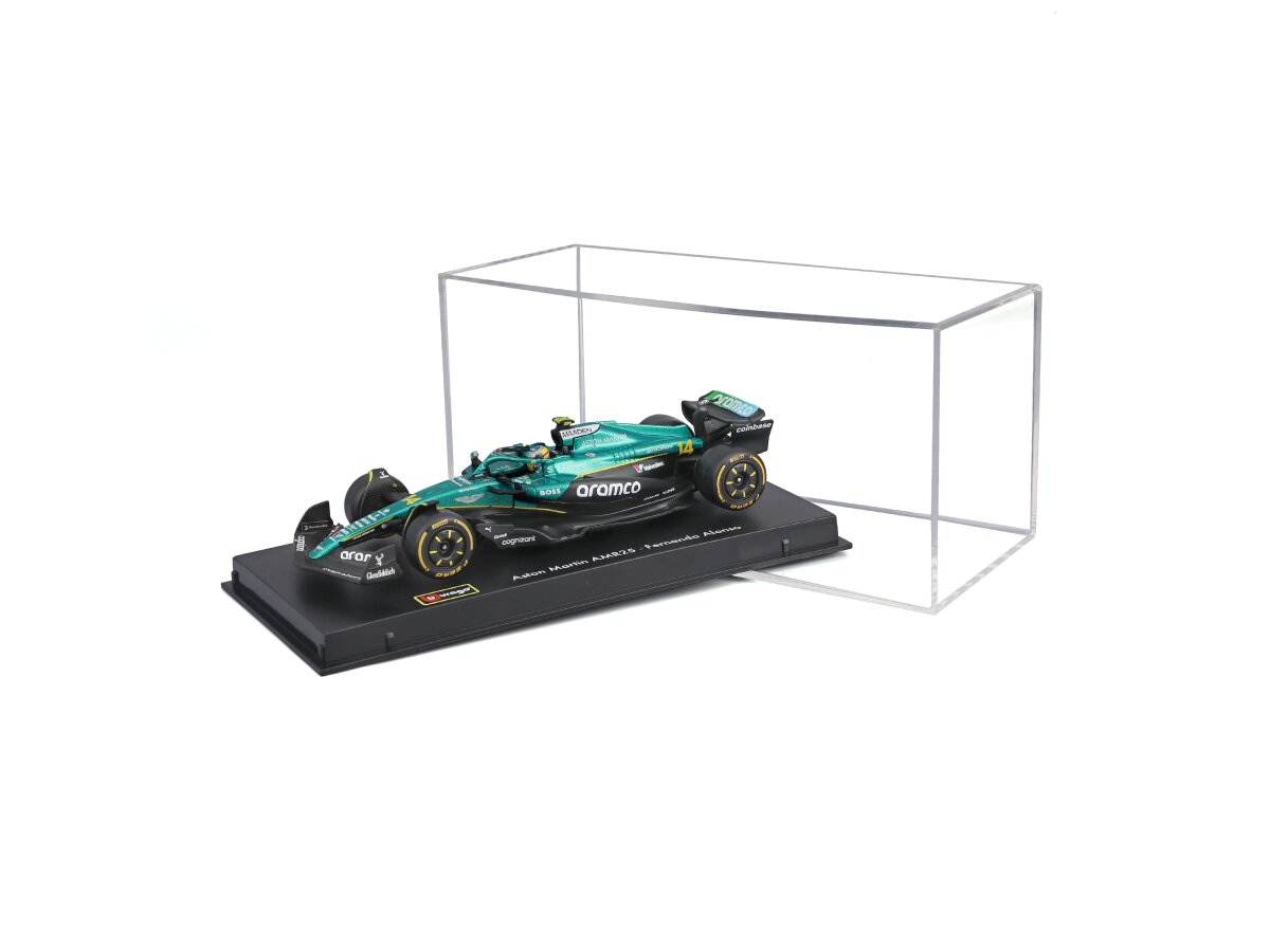 Gedetailleerd schaalmodel van de Aston Martin Amr 25 #14 Fernando Alonso 2025 With Helmet in schaal 1:43 en kleur Donker Groen/zwart/geel.