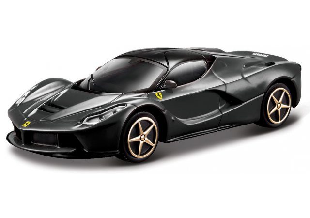 Gedetailleerd schaalmodel van de Ferrari Laferrari in schaal 1:43 en kleur zwart/goud.