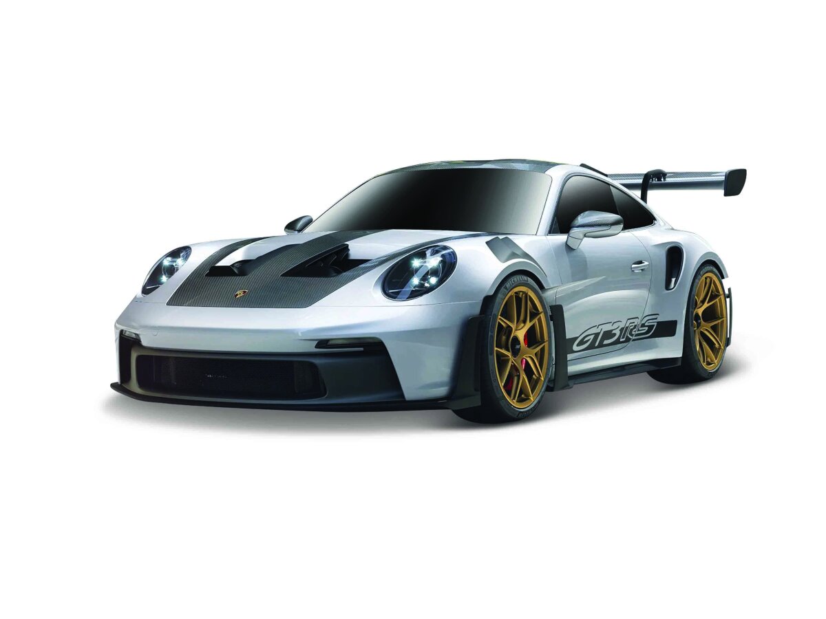 Gedetailleerd schaalmodel van de Porsche 911 Gt3 With Weissach Package 2025 in schaal 1:43 en kleur grijs/rood.