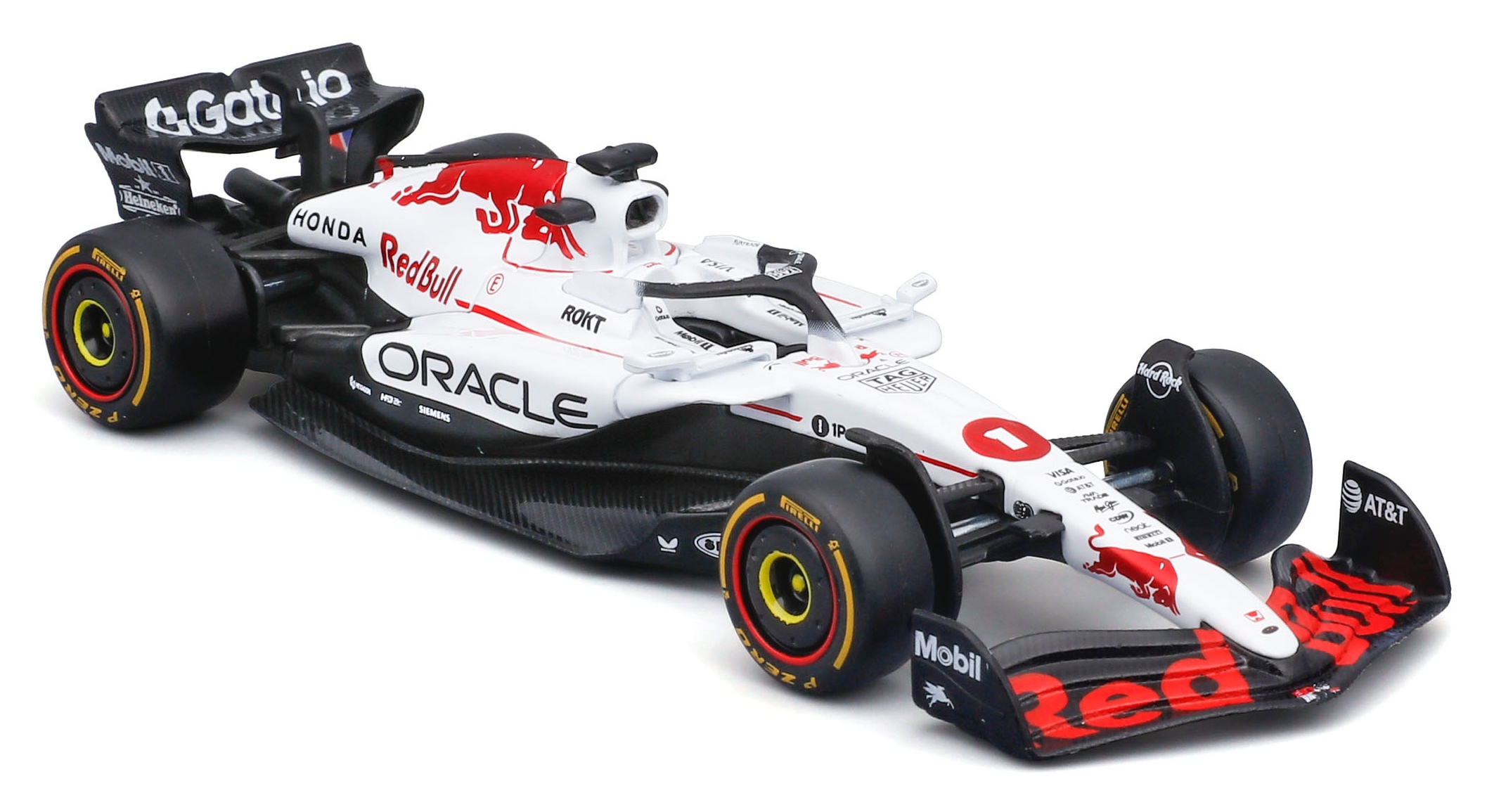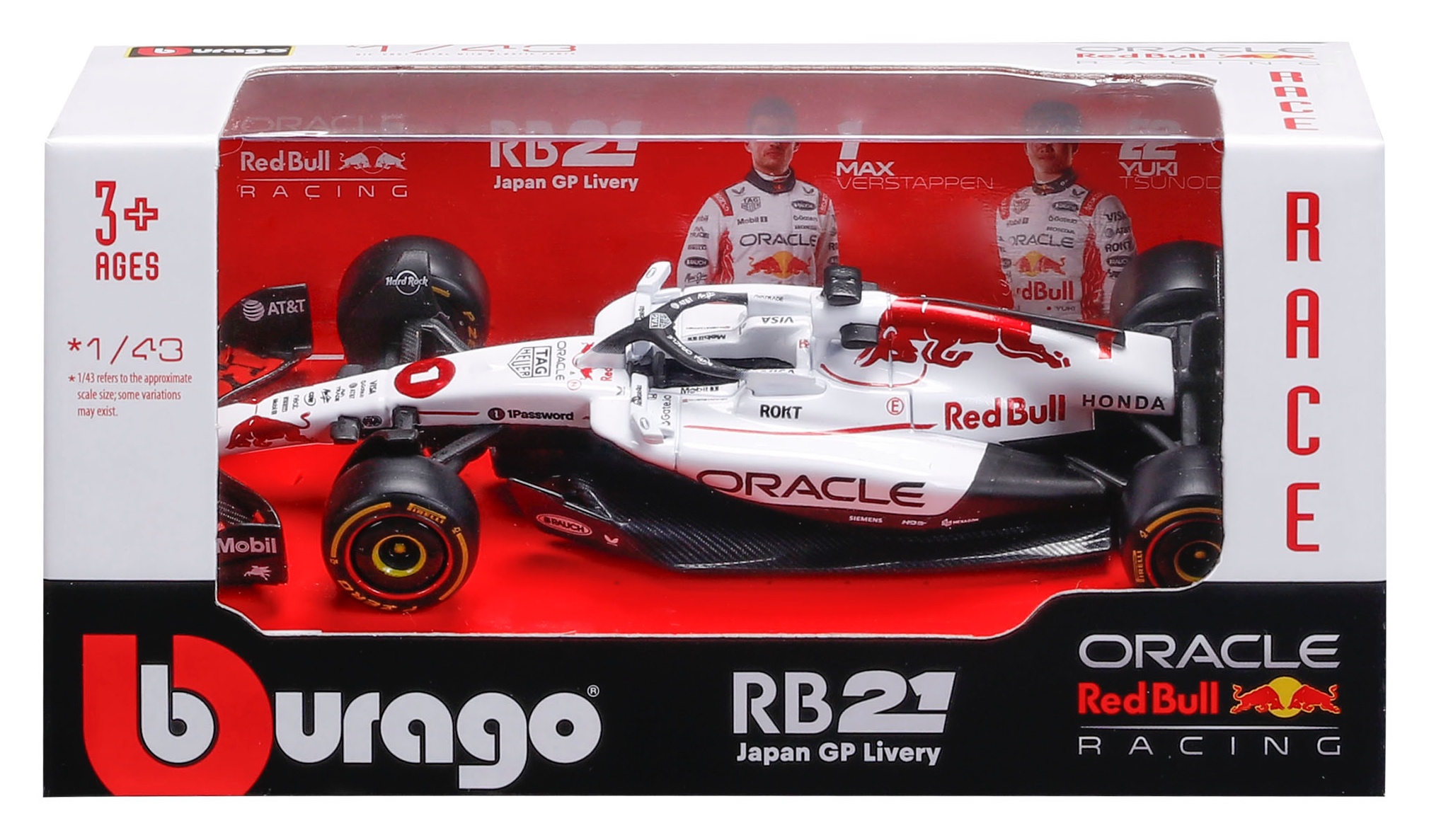 Gedetailleerd schaalmodel van de Red Bull RB21 #1 Max Verstappen, winnaar van de Japan GP 2025, in de speciale witte uitvoering. Uitgevoerd op schaal 1:43 in de kleuren wit, rood en zwart. Een realistische weergave van de unieke livery waarmee Verstappen de race in Suzuka reed.